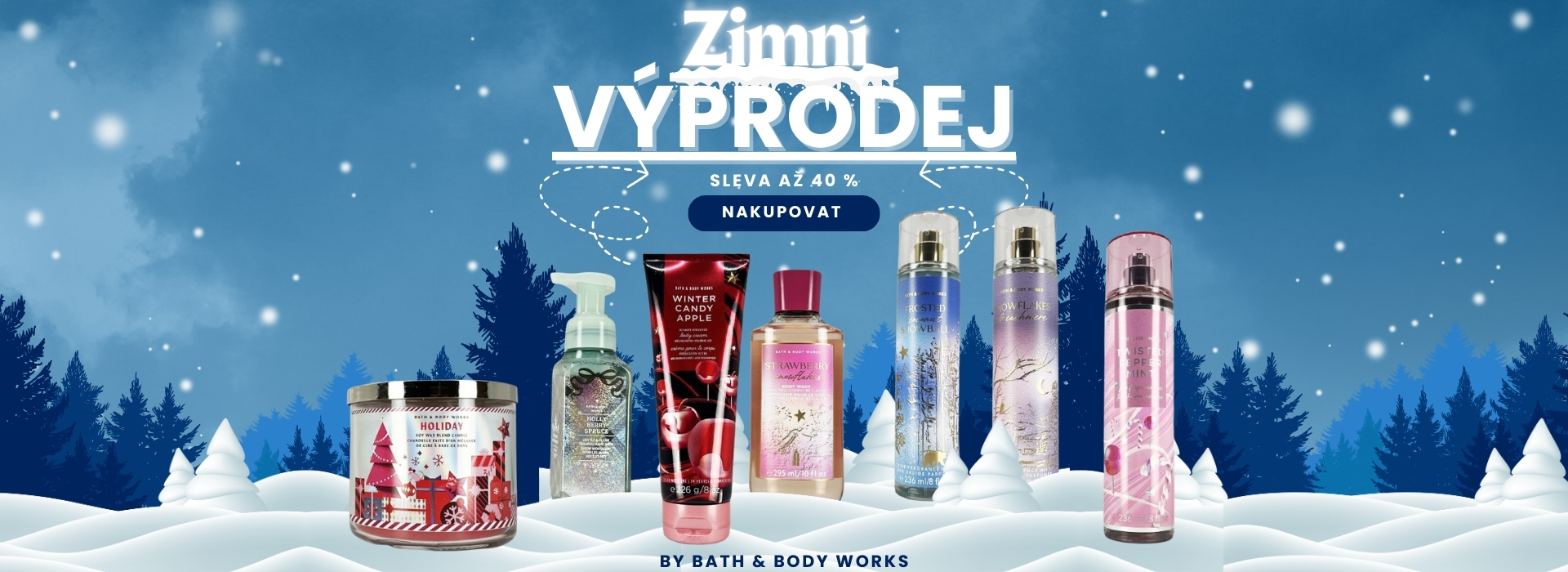 Ve WONET vám přinášíme ikonickou značku Bath & Body Works přímo až ke dveřím. Dopřejte svým smyslům potěšení z neodolatelné tělové kosmetiky, vůní do domácnosti a každodenních nezbytností pro péči o tělo. Od ikonických vonných svíček a bohatých tělových mlék po osvěžující sprchové gely a stylové osvěžovače vzduchu – u nás najdete vše.